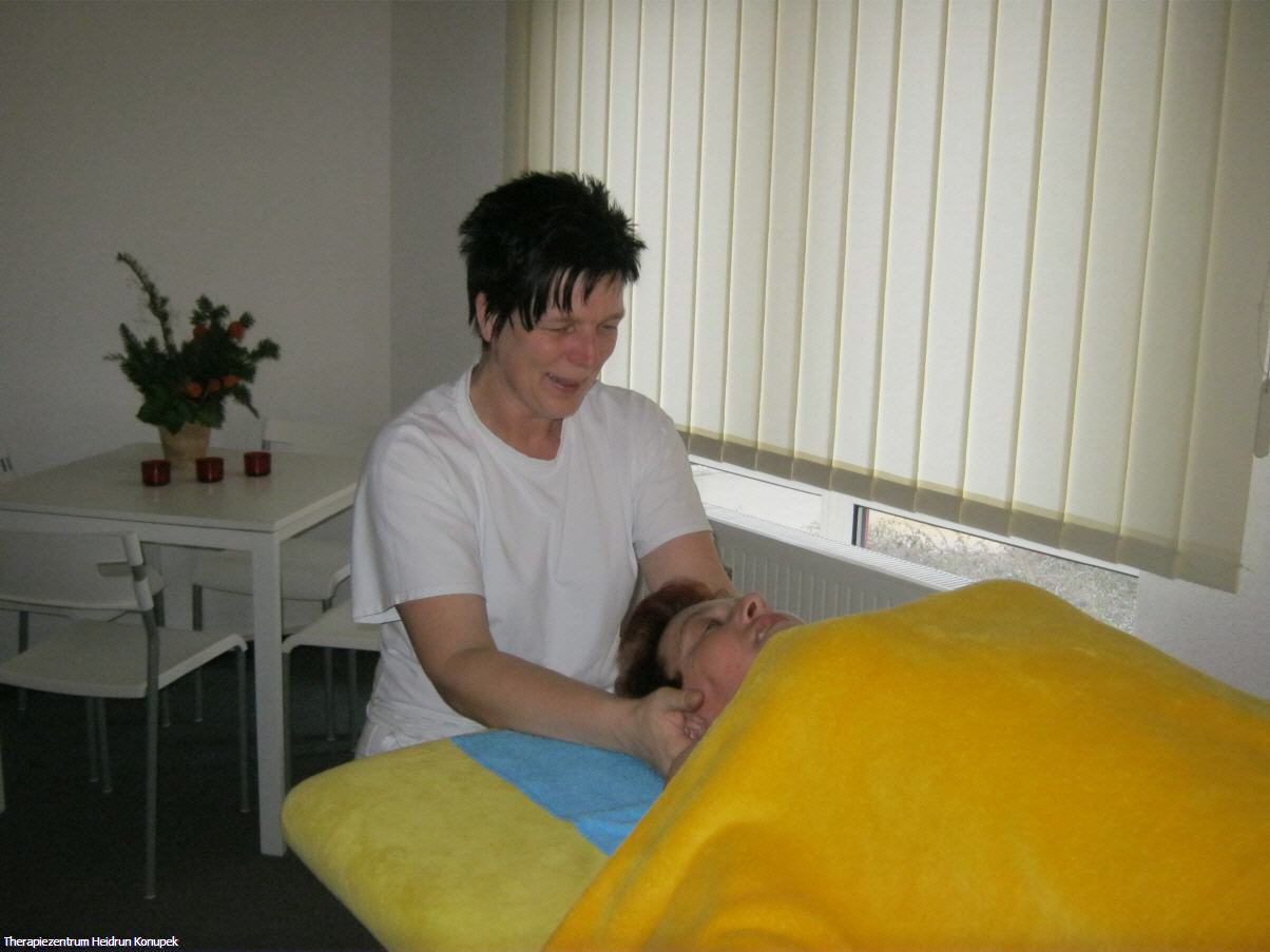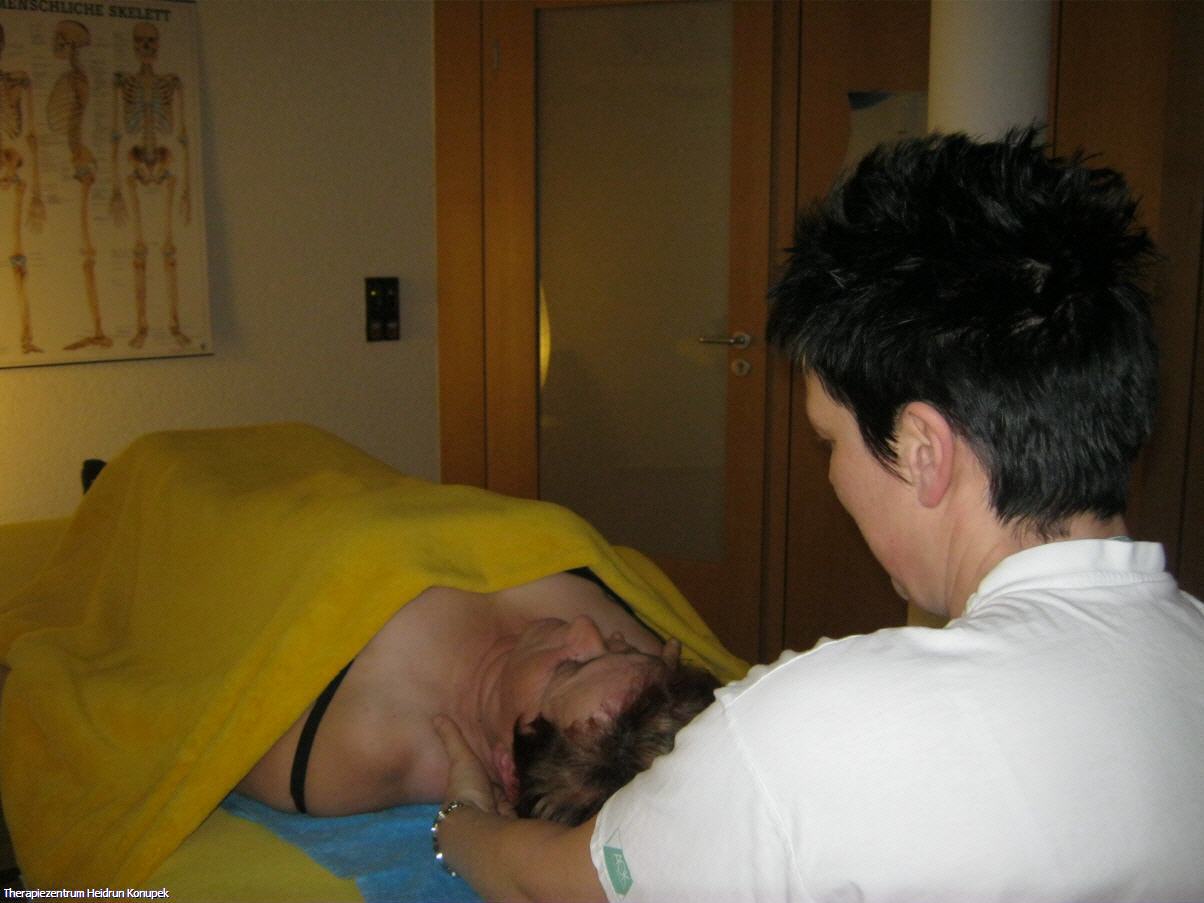Angewendet werden dehnende, mobilisierende und lockernde Grifftechniken, die zur Entspannung der Hals-, Nacken- und Schultergürtelmuskulatur führen.
